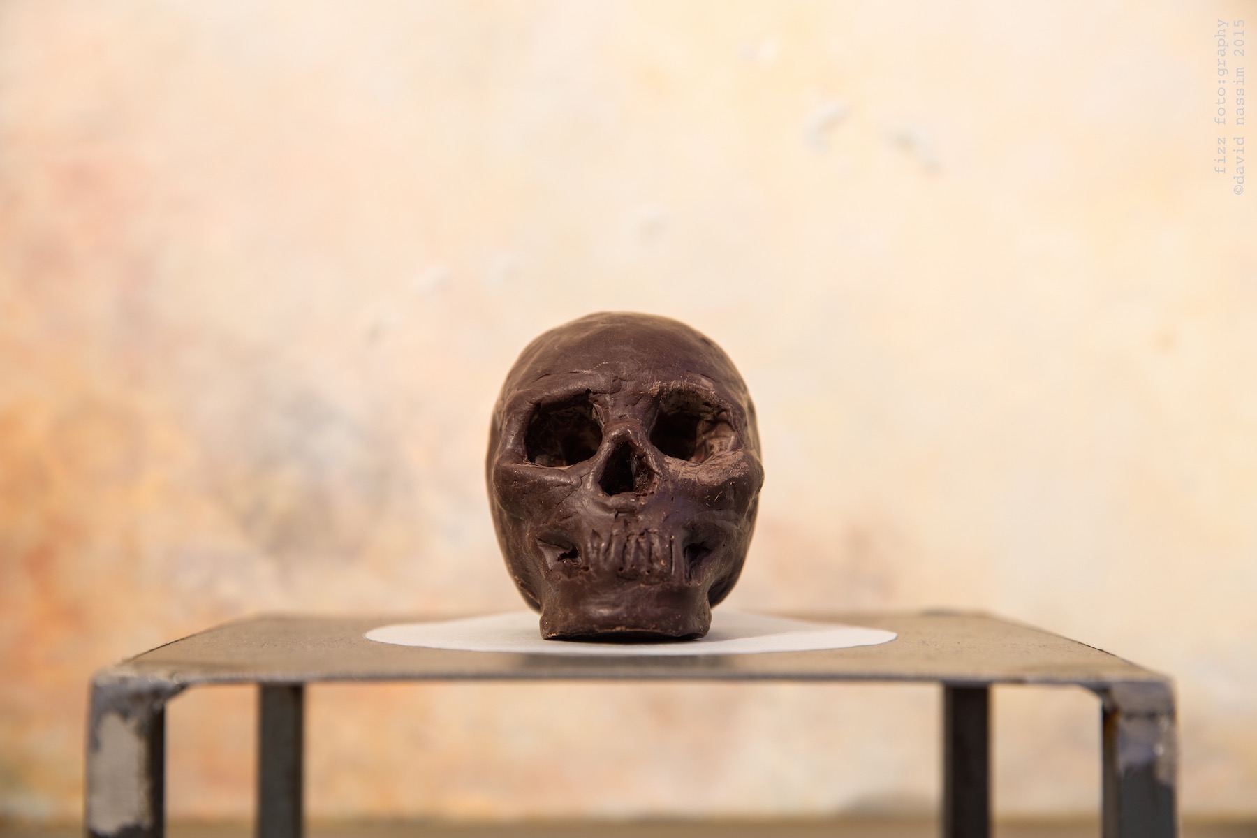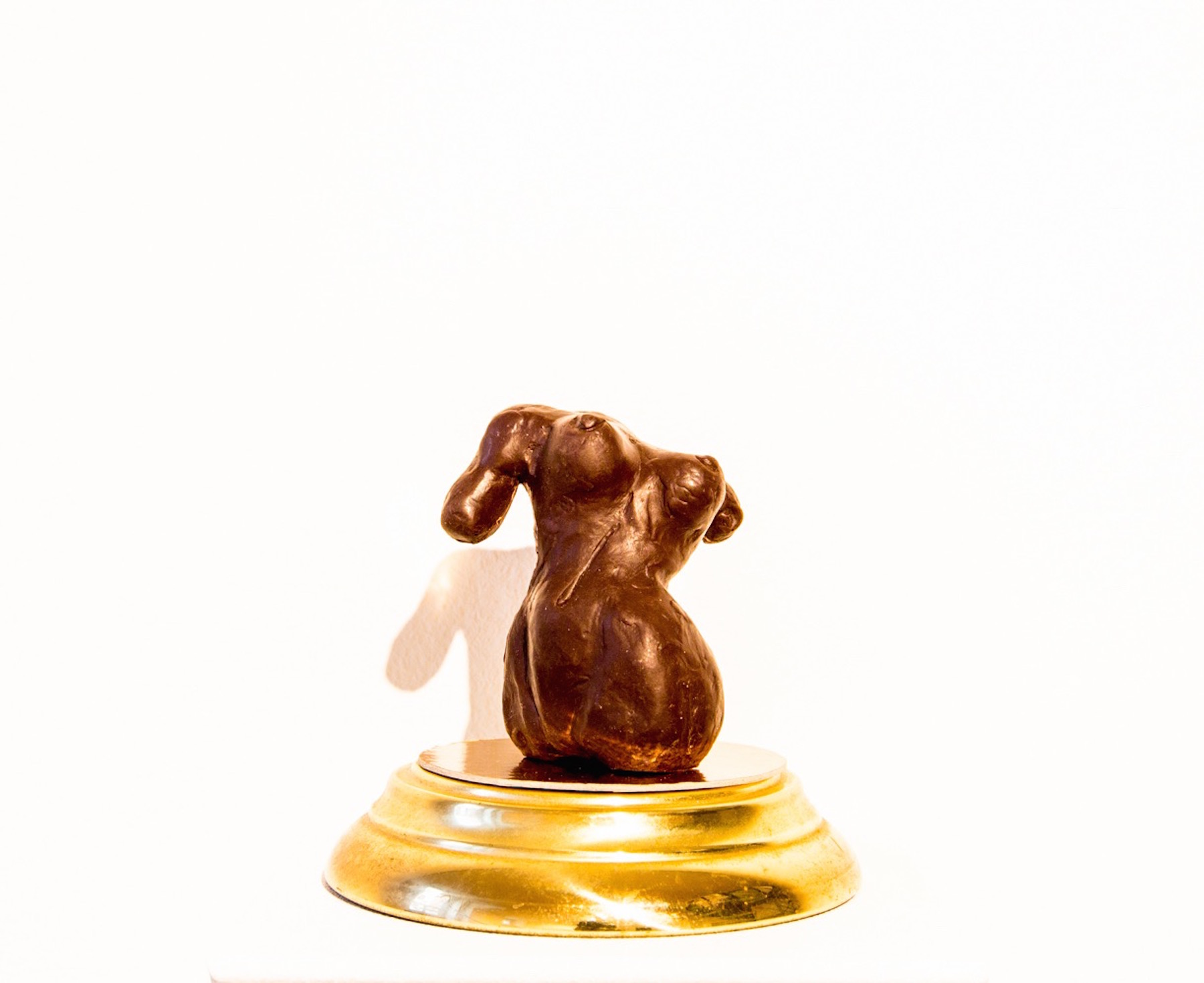 Gather a handful of friends, find a pleasant place to sit, prepare an appropriate number of glasses and delicate plates, select a delicious beverage—red wine, black tea, or orange juice are particularly suitable—and place a small, attractive plate with chocolate shavings and one of Devinast's chocolate sculptures in the center.